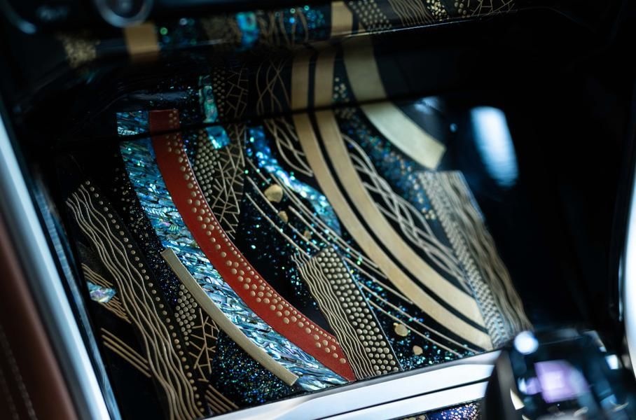 Знаменитый в Киото мастер Шихо Окада приложил свою руку к работе над центральной консолью седана. Техника исполнения рисунка пришла далеко из прошлого. Эта технология появилась в Японии 6 тысяч лет назад. К шестому веку она стала использоваться в изделиях для семьи императора и высших сословий. В новой спецверсии BMW традиционное японское искусство совмещено с современной технологичностью и символизирует концепцию «новой роскоши».